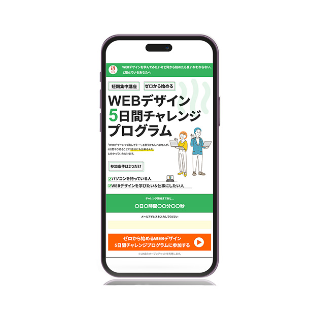- LP制作 WEBデザインスクール5日間チャレンジ案内