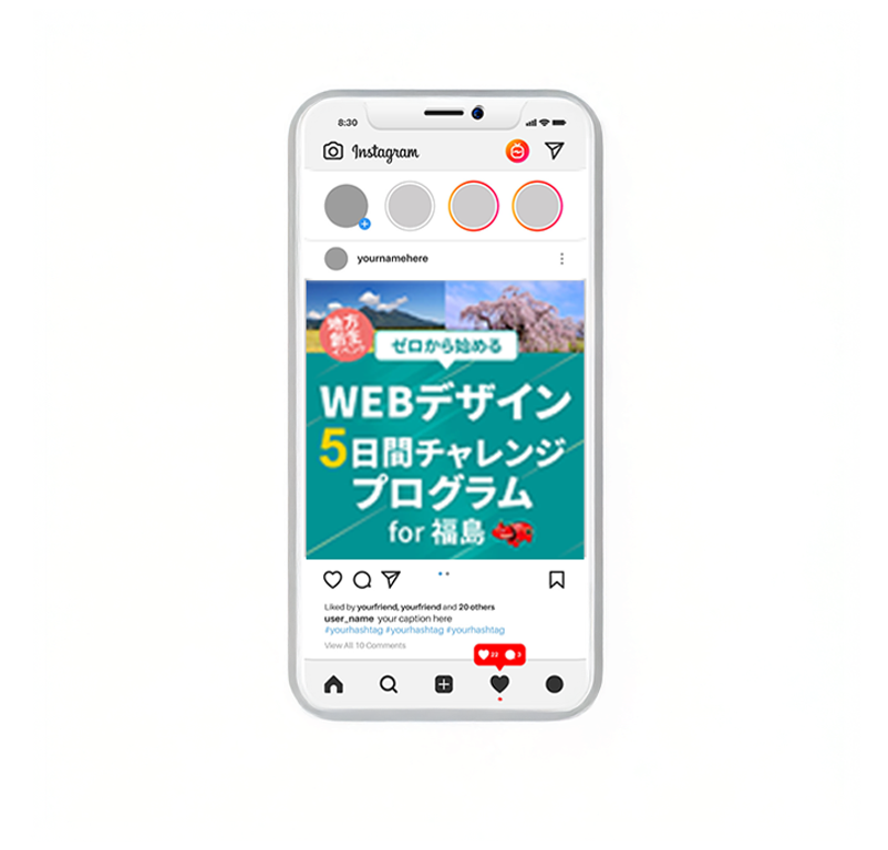 バナー画像やInstagram投稿画像、ヘッダーなどのWEB画像は、サービスの第一印象を決める大切な入り口ですそのため、目的や媒体に合わせ、見やすさや導線を意識し、サービスや商品の魅力が伝わるデザインを意識し制作いたします。